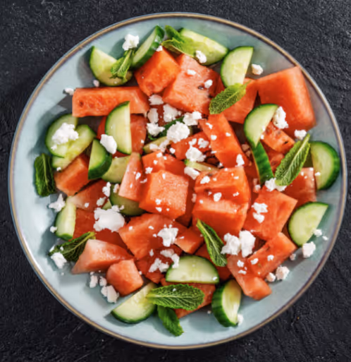 Delicious, healthy, and refreshing watermelon feta salad - the perfect combination of flavors to share with your family on a hot summer day!